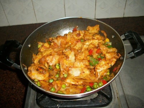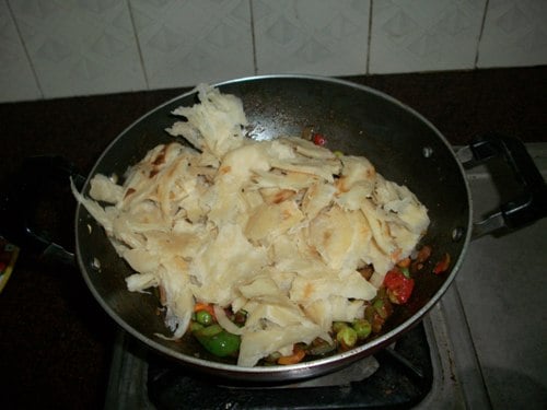 9)Now add in shredded parotta. Instead of parotta add chapati.