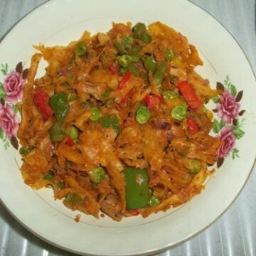 You can add chicken, egg, mutton to make this. It is a super flexible recipe and uses leftover paratha and turn it into an awesome recipe. I have a version of egg kothu parota in my blog.