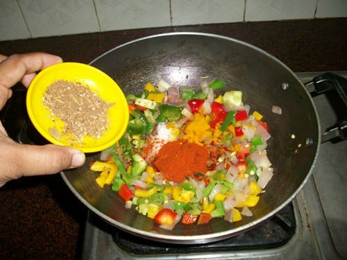 - Spice powder : Spices like chilli powder, coriander powder and garam masala powder are added.