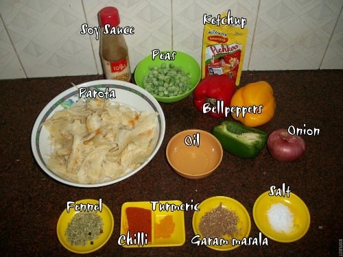 - Paratha / Parotta : Parotta is the main base of the dish. You can use store bought or homemade parotta. For a healthy version, use chapati instead of parotta.