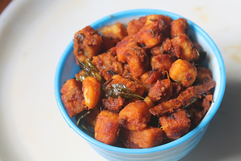 Elephant yam is a beautiful veggie, which can be transformed into so many types of amazing dishes. It can withstand to any strong flavour and spices. This recipe is one of the heavily spiced dish which turns beautiful at the end. I bet you would have never tasted this dish before. It is very easy to prepare, the one hard step is preparing the yam, it needs to be boiled and fried before using it in the dish.