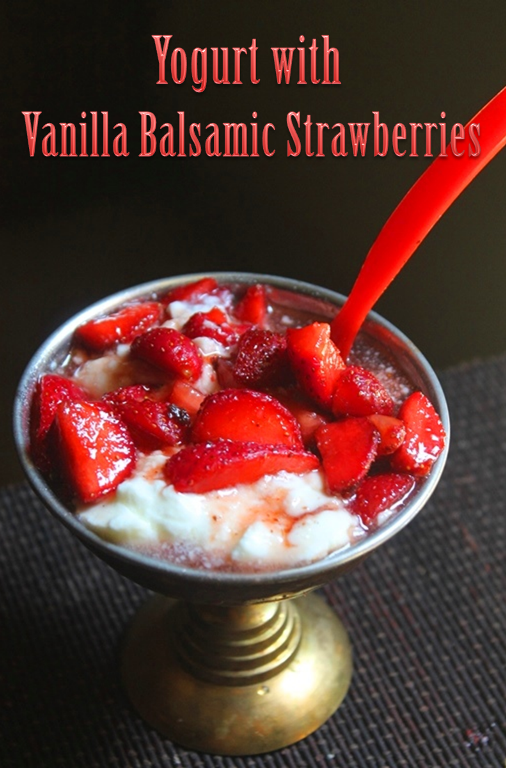 Yogurt with Vanilla Balsamic Strawberries with step by step pictures. This is made with Strawberries and Yogurt.